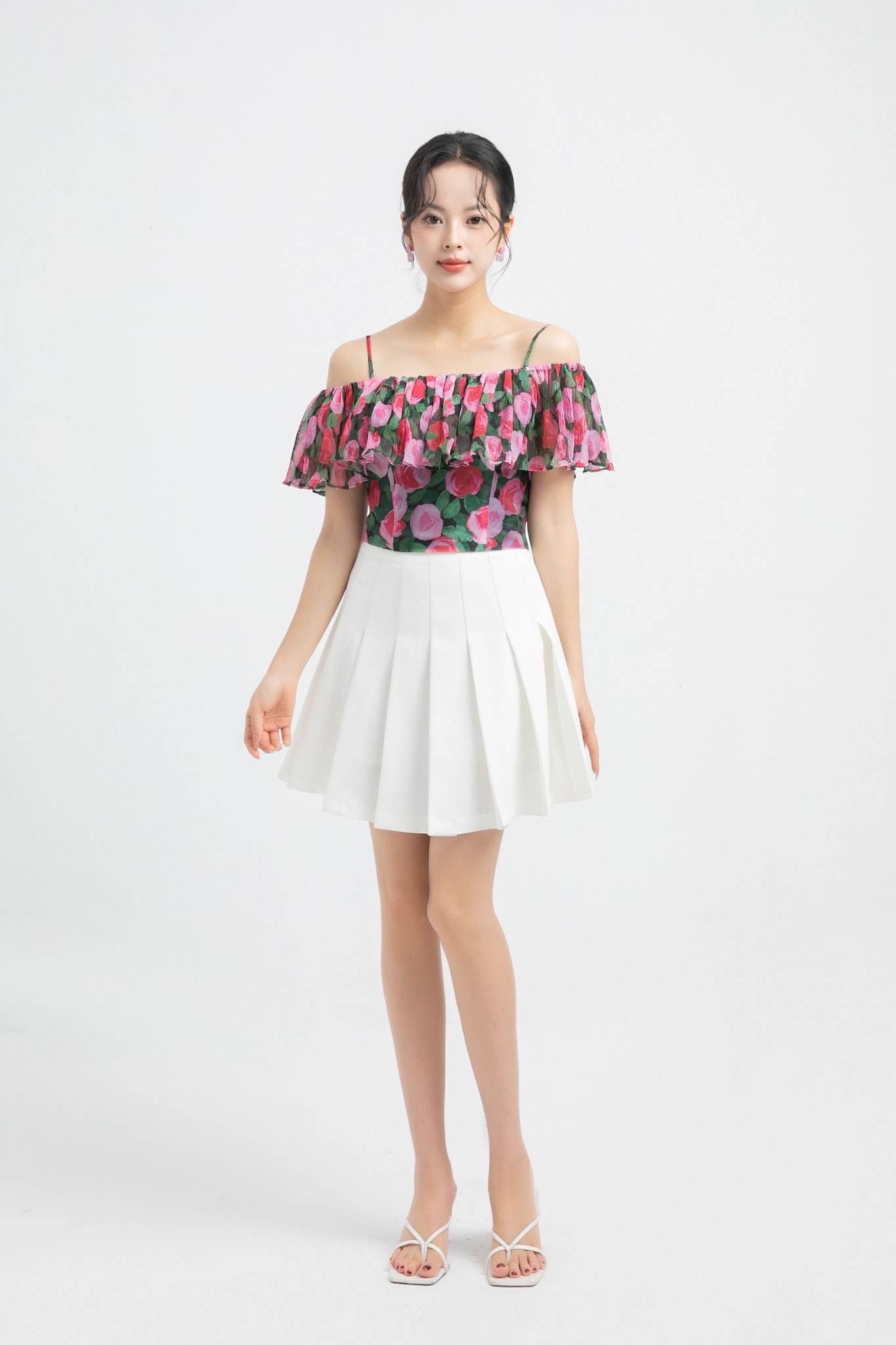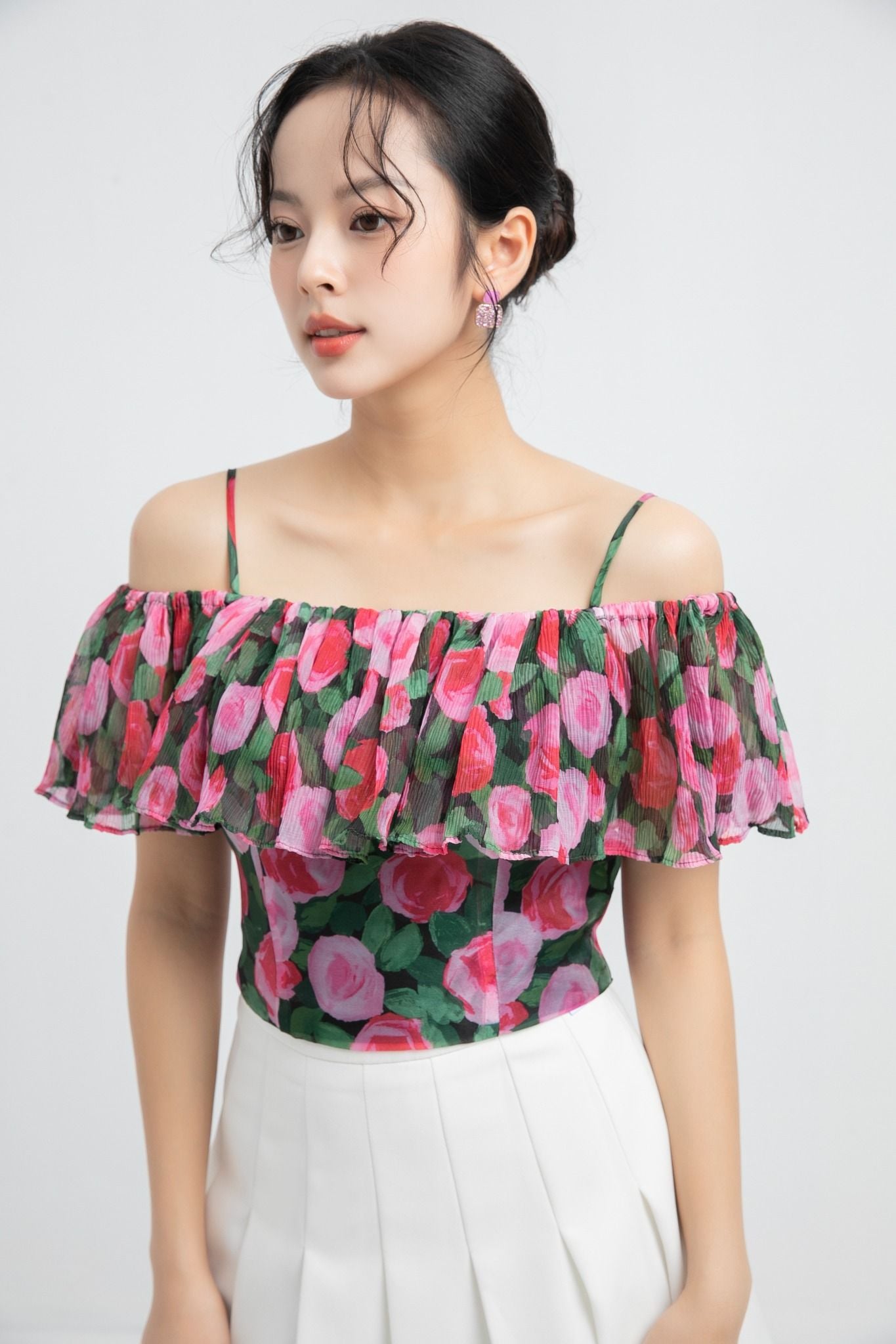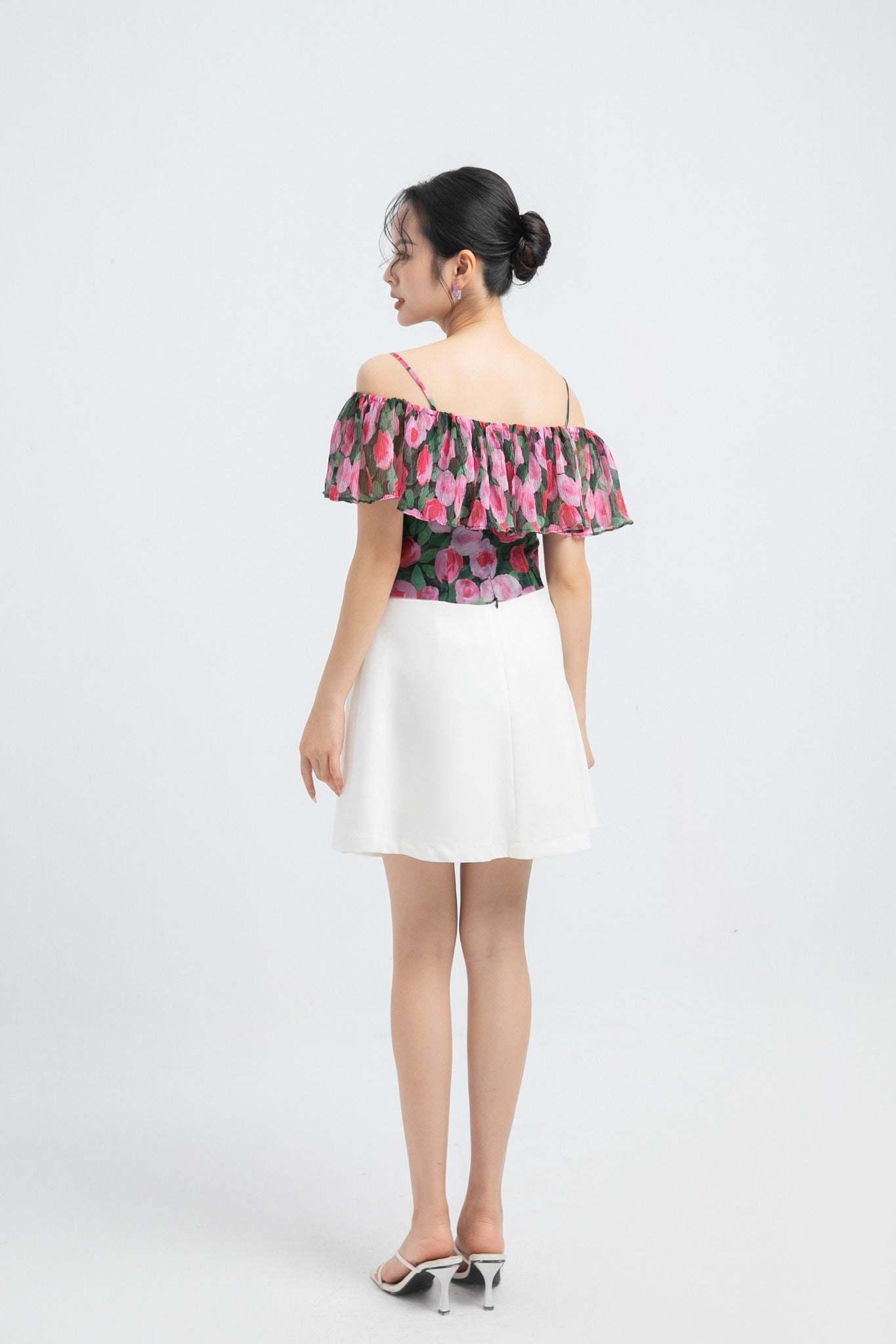 Kiểu dáng: áo thiết kế trễ vai, kết hợp họa tiết