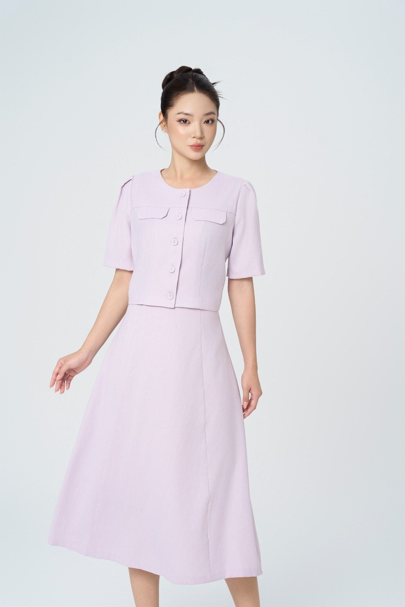 Kiểu dáng: chân váy thiết kế dáng chữ A, dài qua gối, tone màu tím trơn