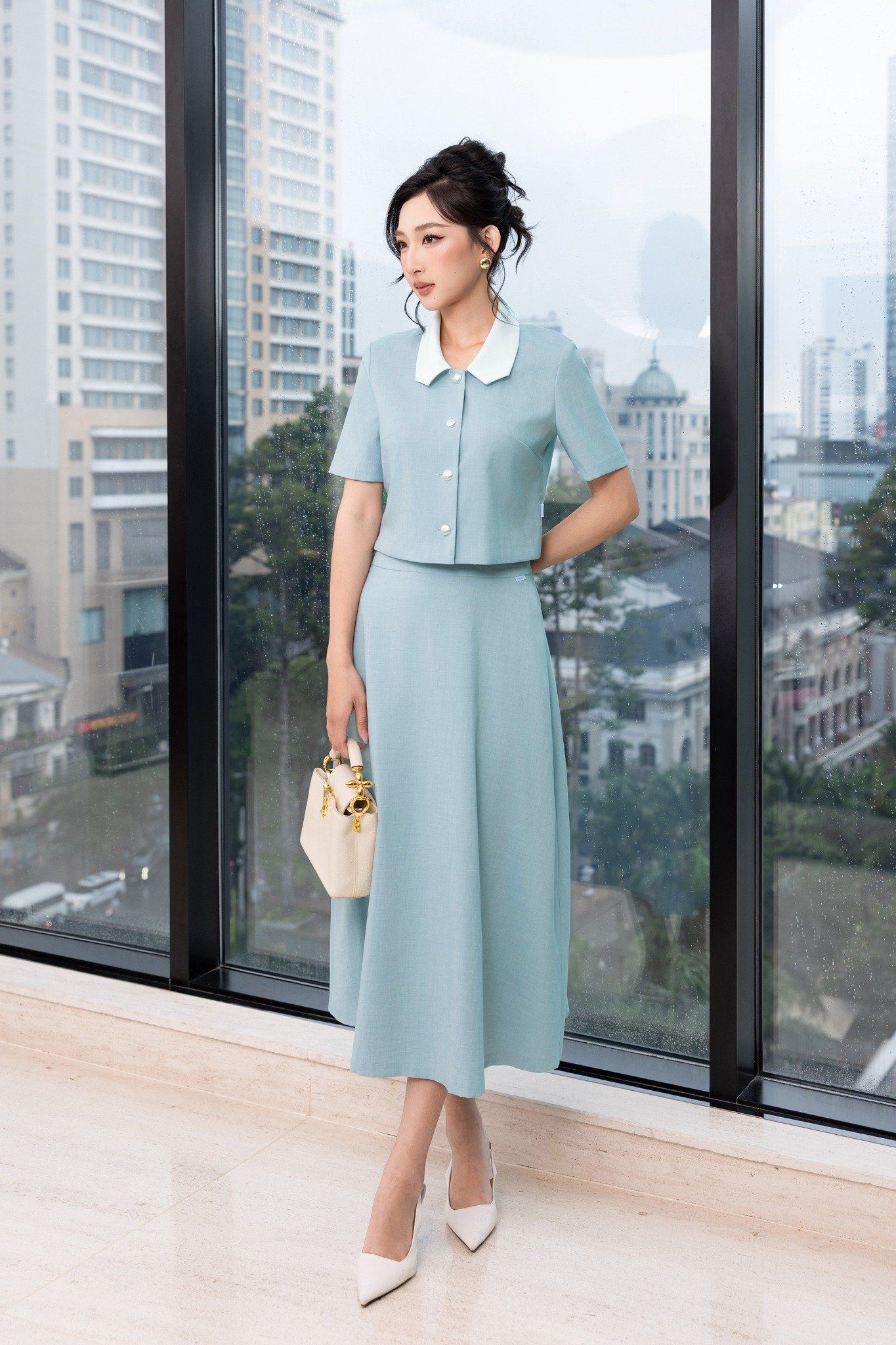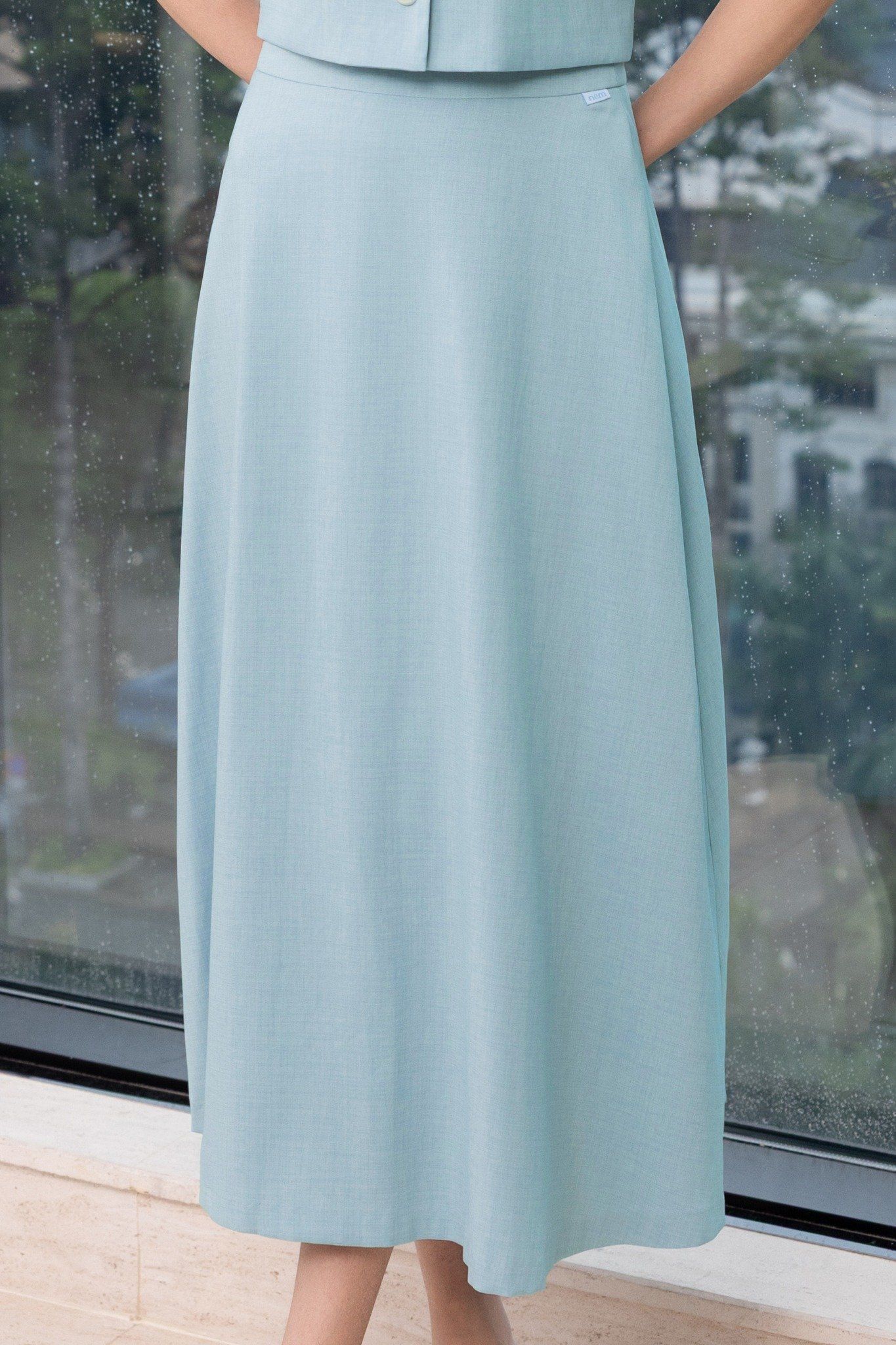 Kiểu dáng: chân váy thiết kế dáng chữ A giúp tôn dáng hiệu quả, độ dài qua gối, tone màu xanh trẻ trung, sản phẩm có thể dễ dàng kết hợp cùng áo với nhiều tone màu khác nhau