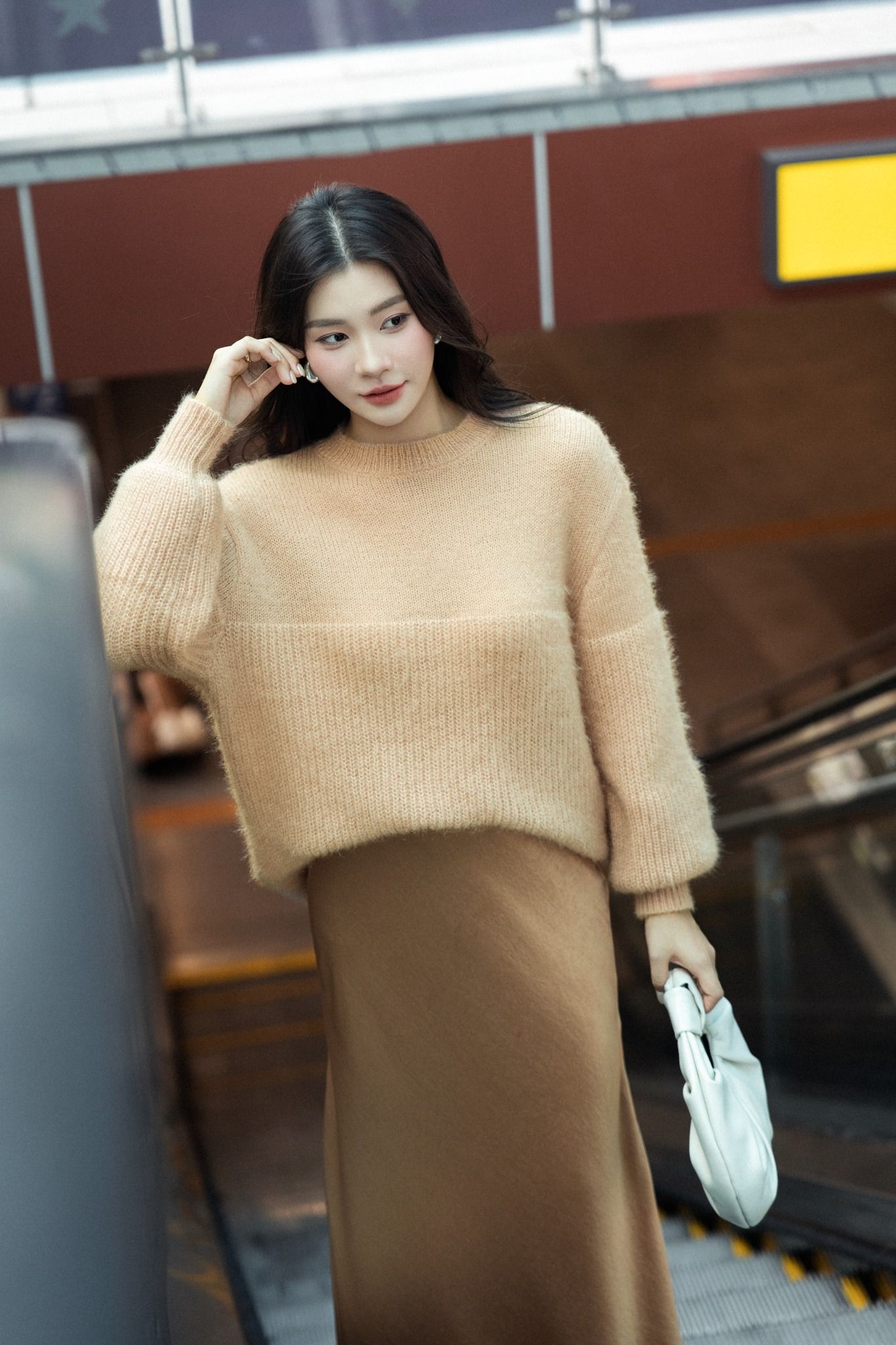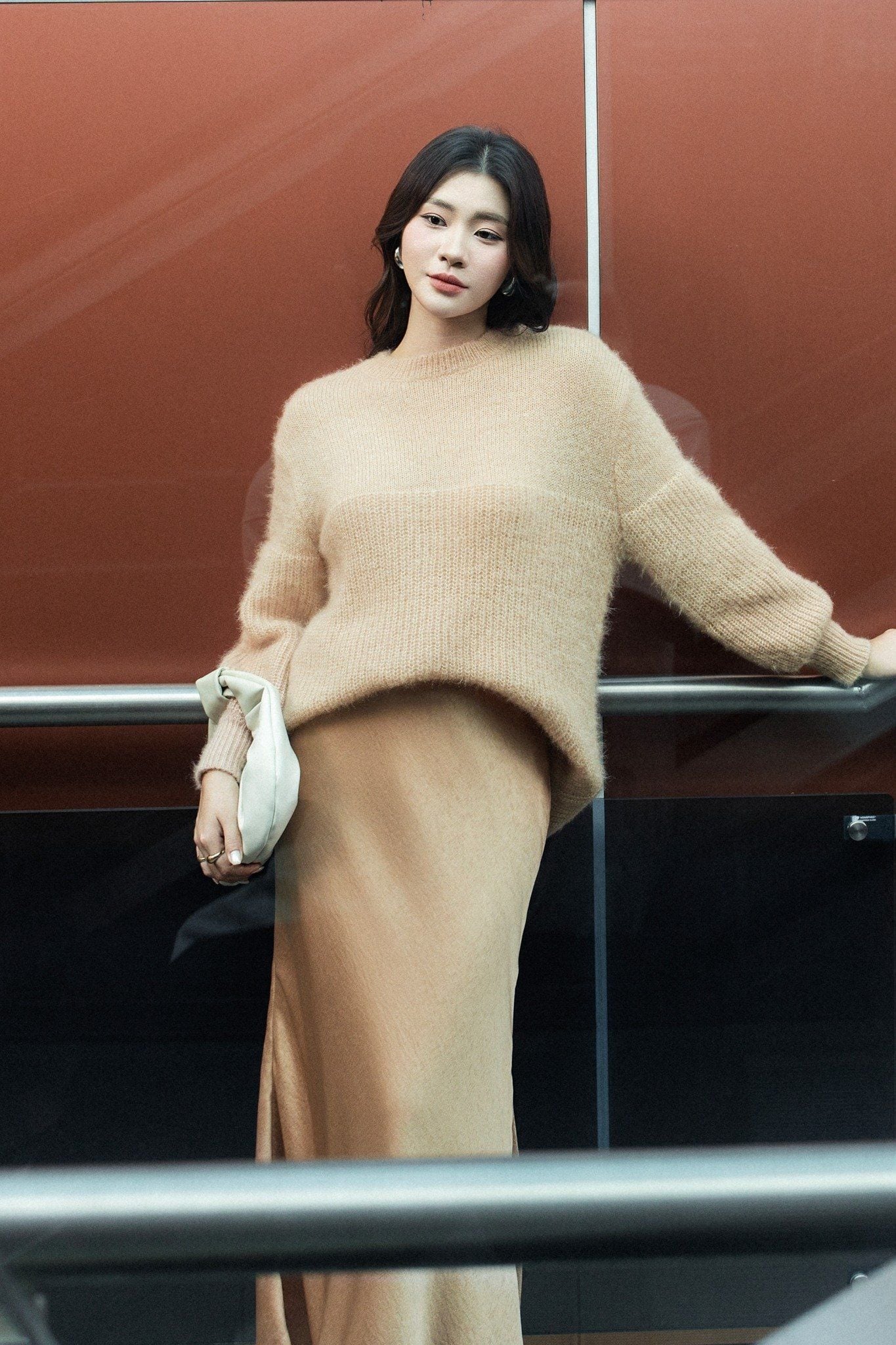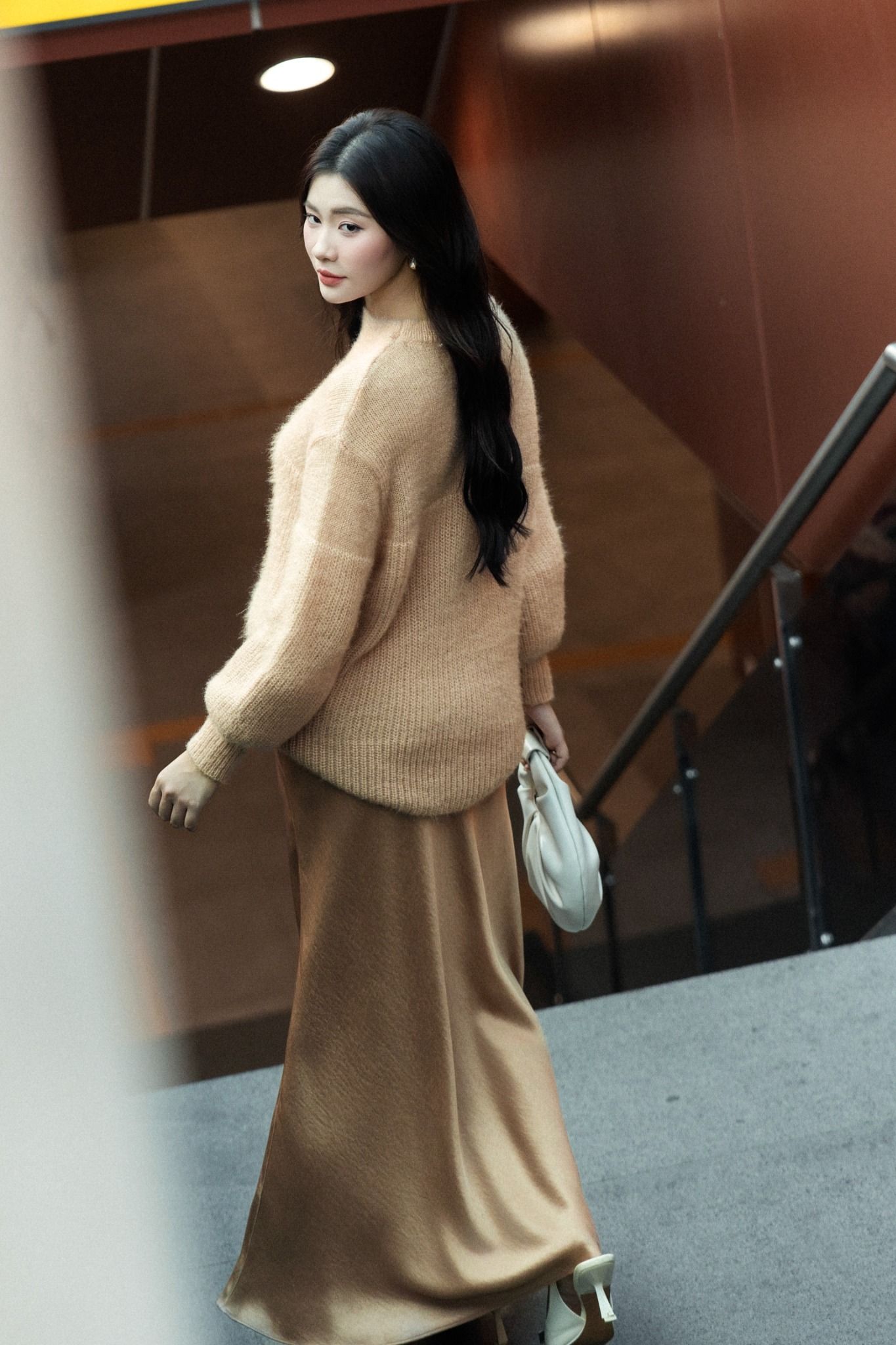 Kiểu dáng: chân váy thiết kế dáng đuôi cá ôm nhẹ giúp tôn dáng hiệu quả, độ dài qua gối, tone màu nâu thanh lịch