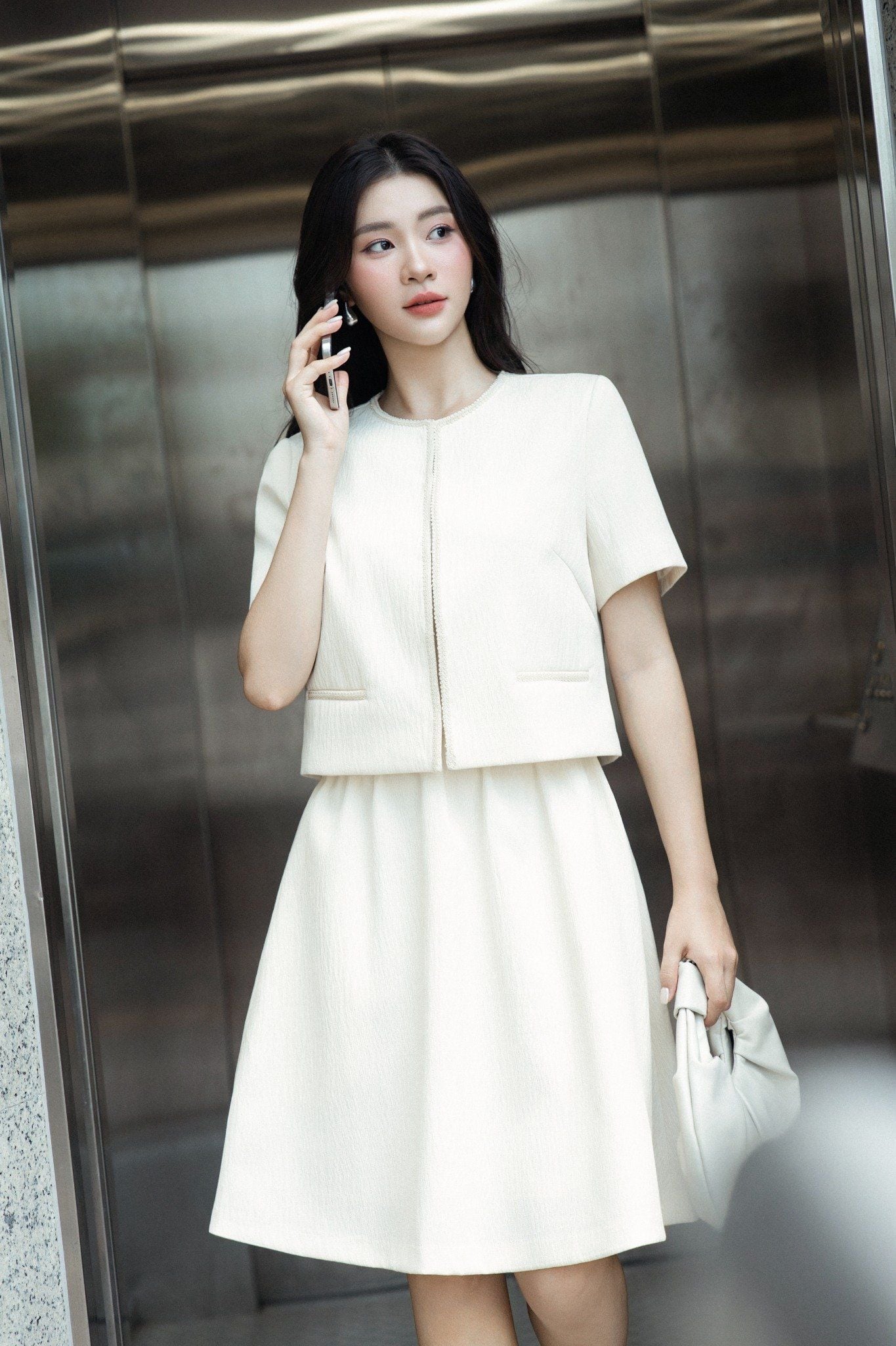 Kiểu dáng: chân váy thiết kế dáng chữ A giúp che khuyết điểm cơ thể hiệu quả, độ dài trên gối mang tơi sự trẻ trung cho người mặc, tone màu trắng kem trơn, sản phẩm có thể dễ dàng kết hợp cùng áo với nhiều tone màu khác nhau