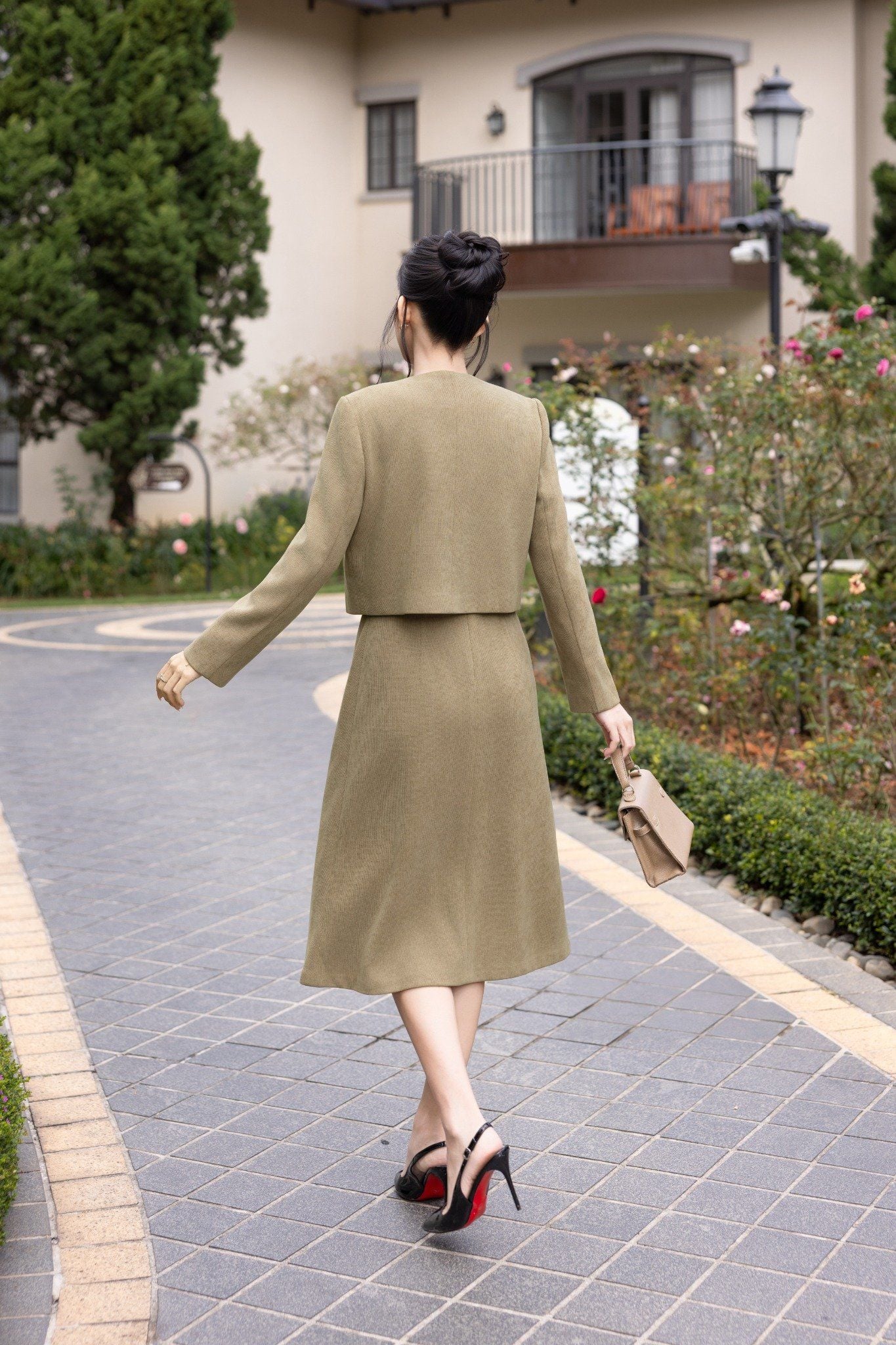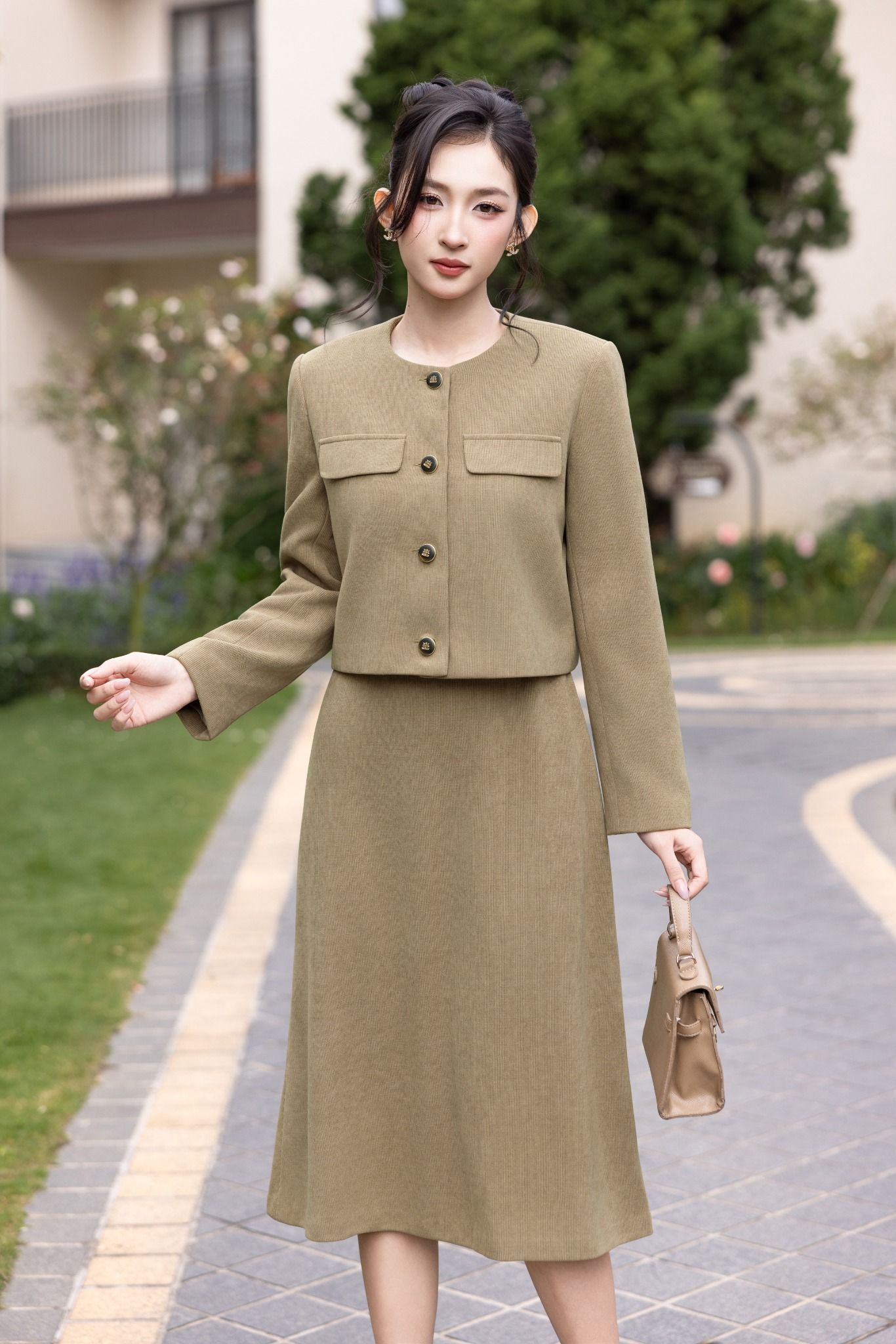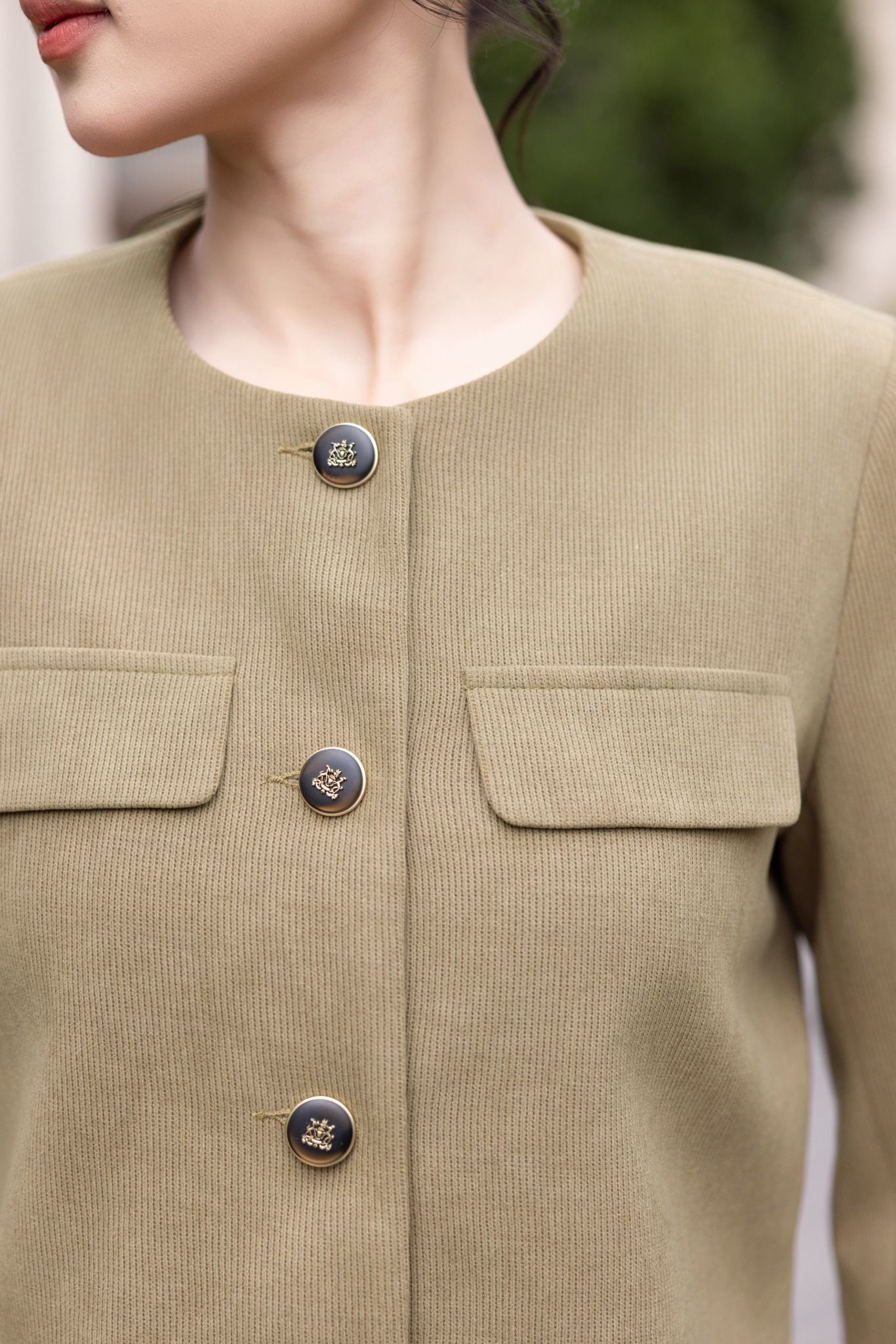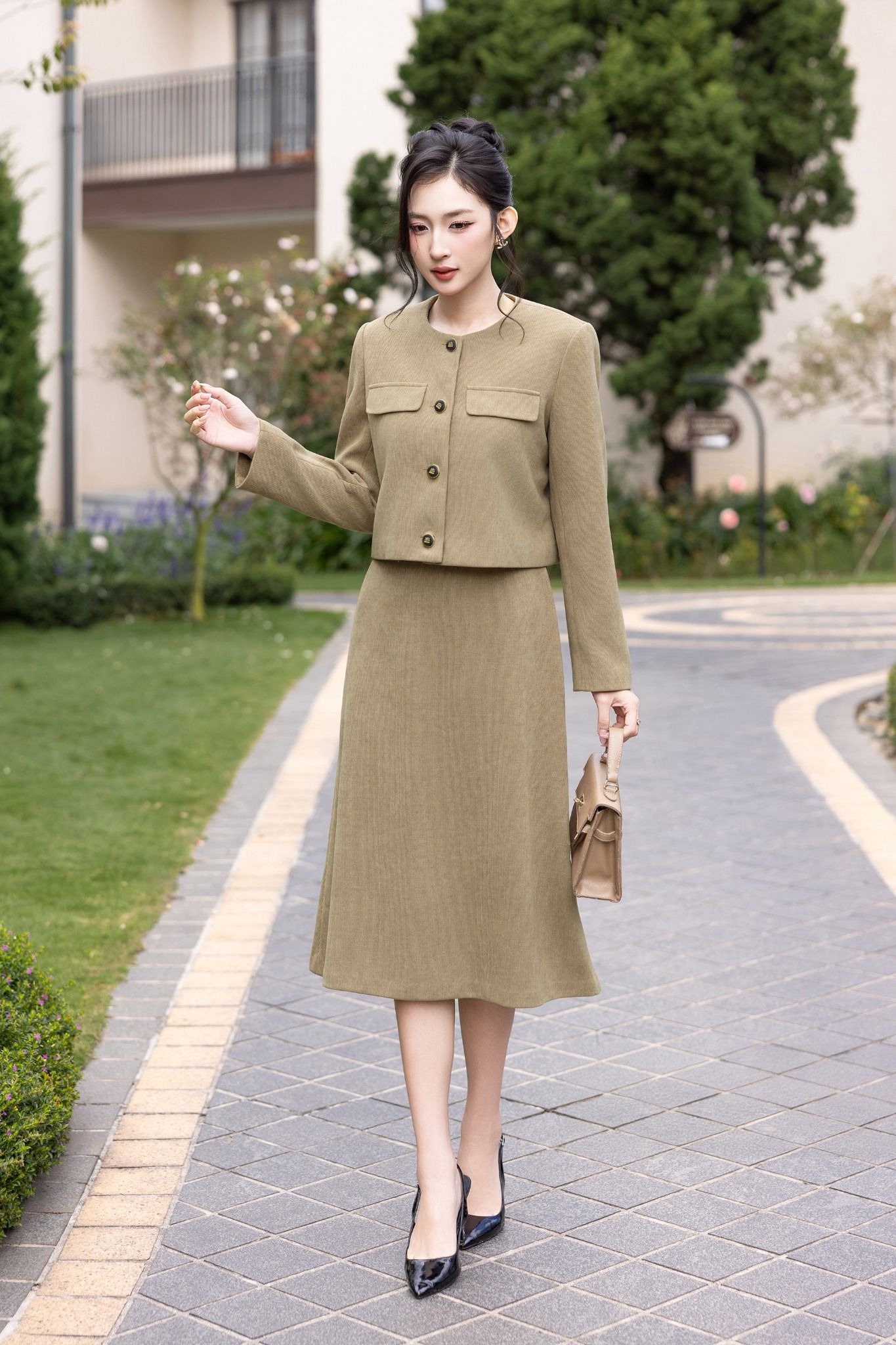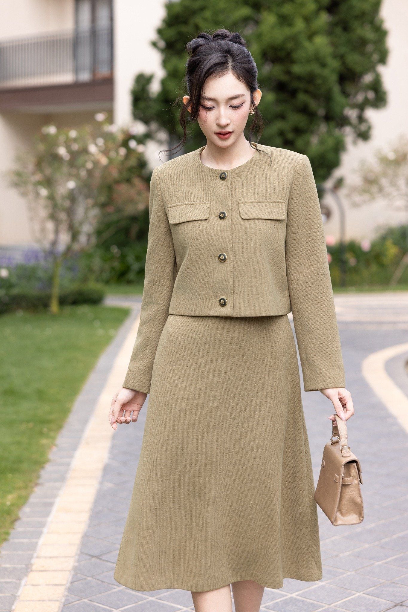 Kiểu dáng: áo công sở thiết kế dài tay, dáng suông nhẹ cùng chiều dài vừa phải giúp người mặc giữ được sự thanh lịch mà trẻ trung hơn các dáng áo vest truyền thống, tone màu nâu kết hợp hàng khuy kim loại phía trước mang tới sự thanh lịch, sang trọng