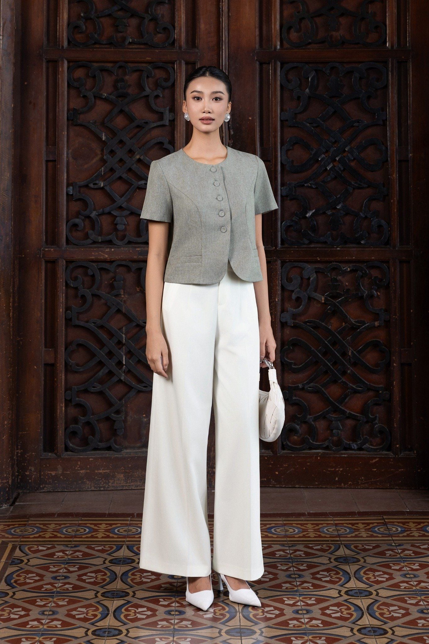 Kiểu dáng: áo công sở thiết kế ngắn tay, áo dáng suông và chiều dài áo vừa phải phù hợp thả suông. Áo sử dụng tone màu nâu thanh lịch, kết hợp hàng khuy bọc cài phái trước