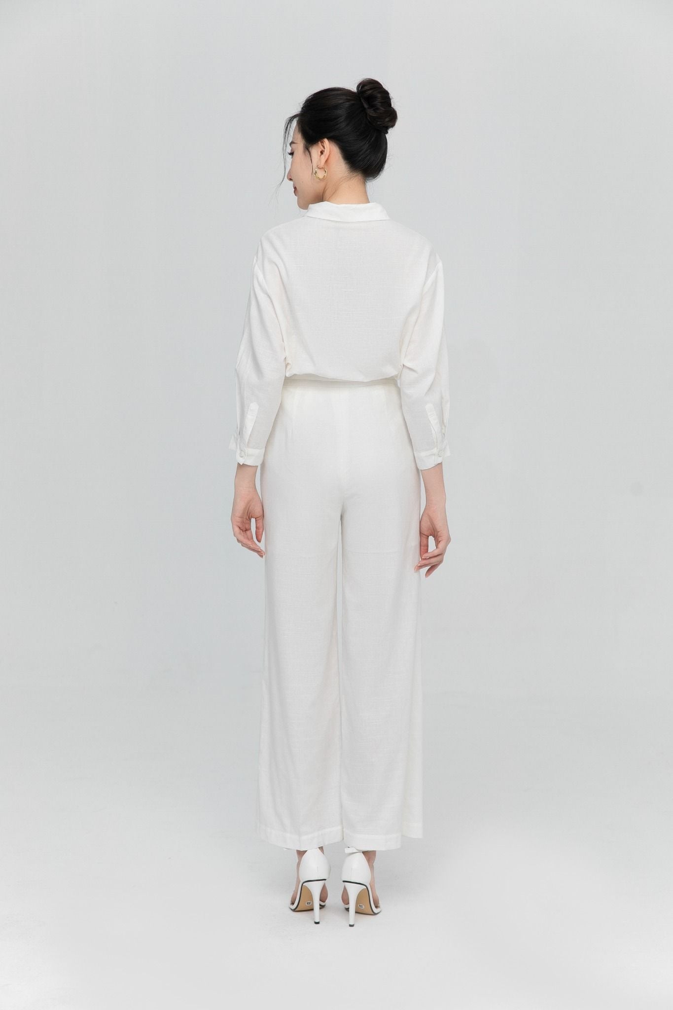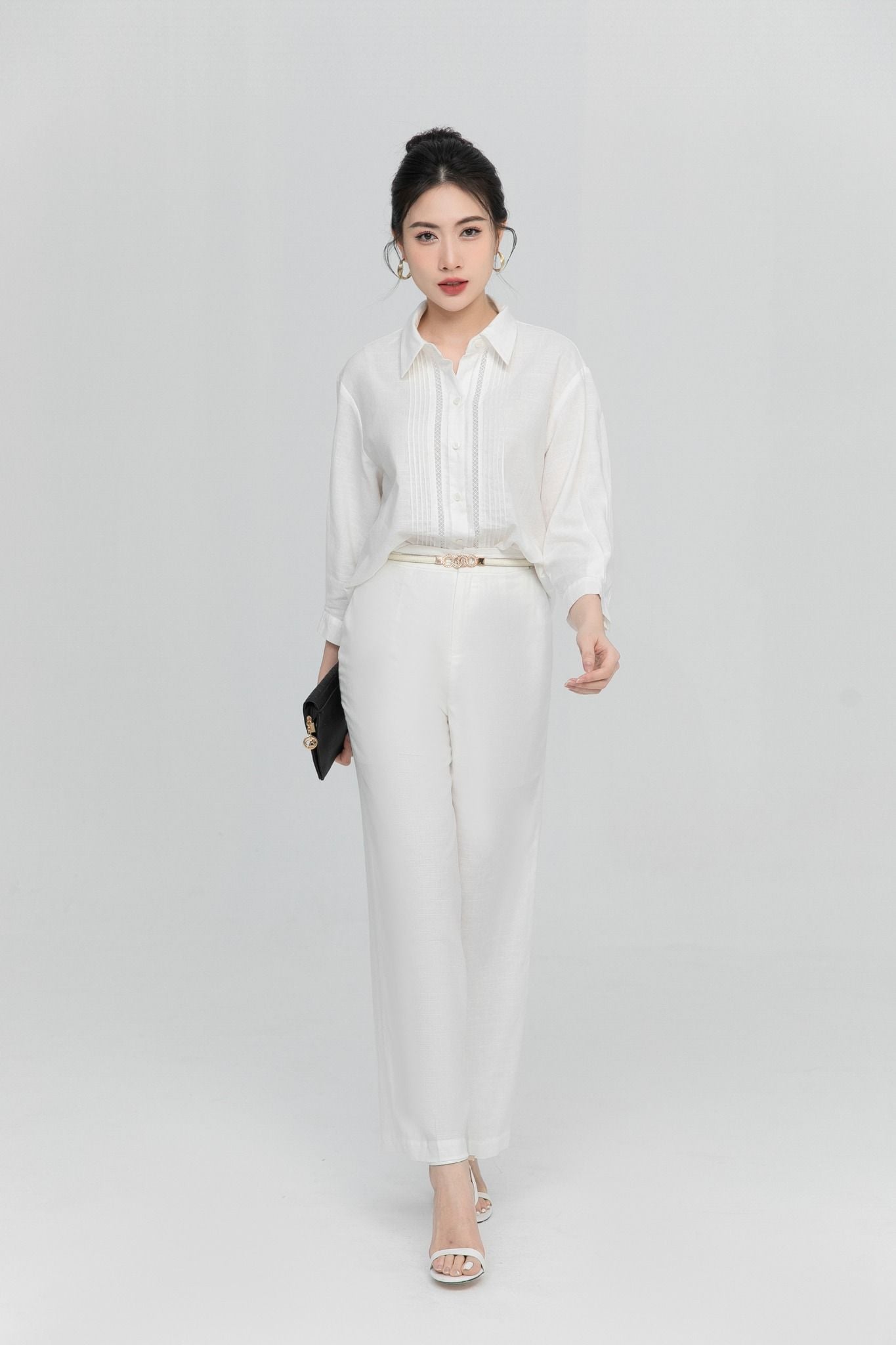 Kiểu dáng: quần dài thiết kế dáng ống suông, tone màu trắng trơn