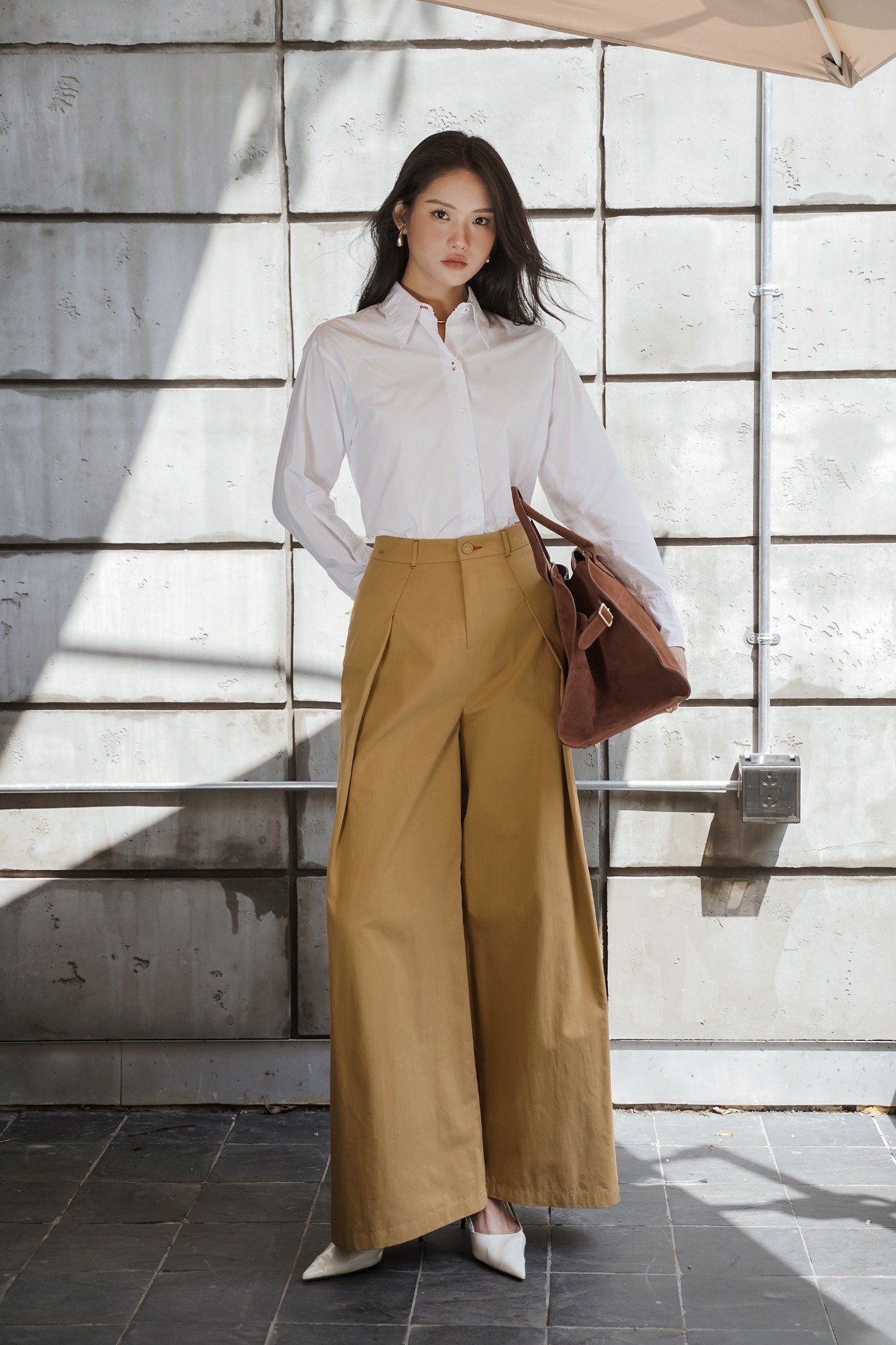 Kiểu dáng: quần dài thiết kế cạp cao kết hợp cùng phần suông rộng giúp tôn lên vòng 2 và tạo hiệu ứng đồng hồ cát cho cơ thể, tone màu nâu thanh lịch có thể dễ dàng kết hợp với các item khác