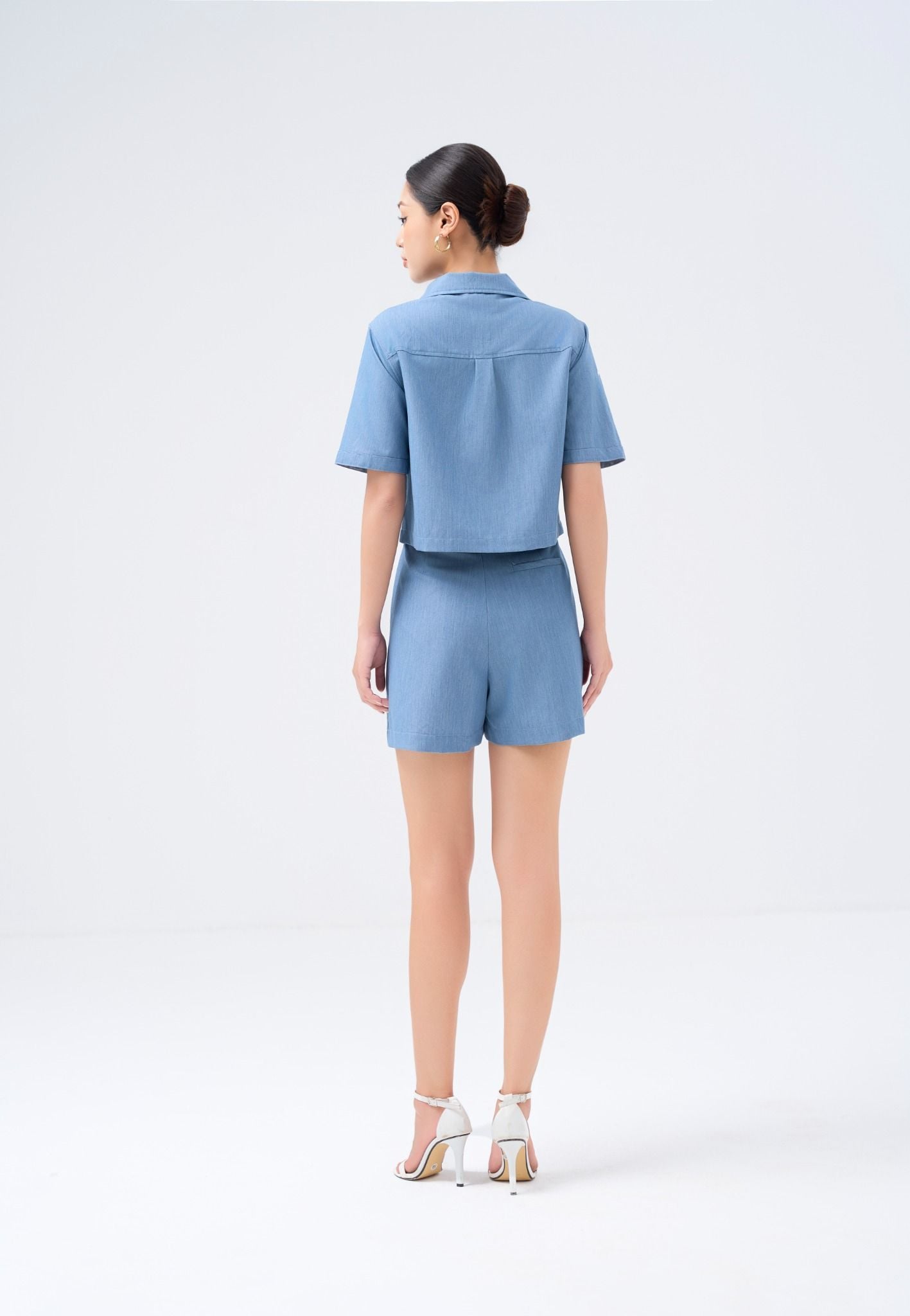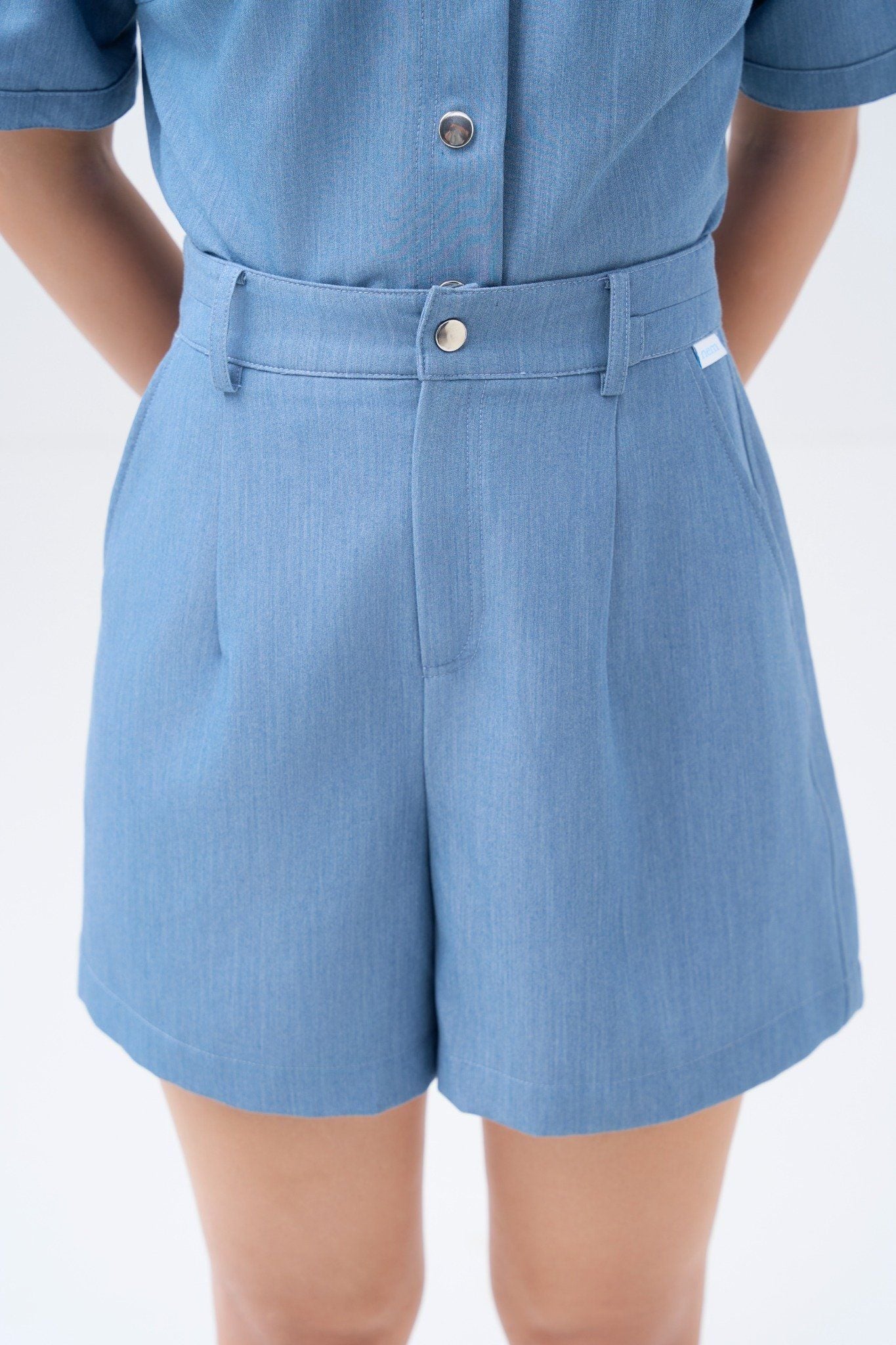 Kiểu dáng: quần short thiết kế dáng ống rộng, tone màu xanh trơn