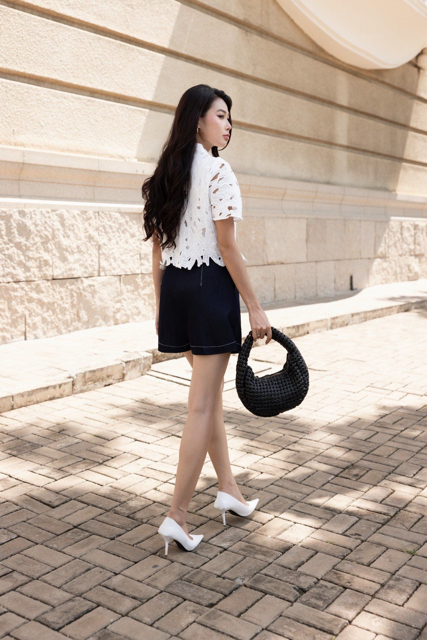 Thông tin người mẫu: cao 1m60, nặng 50kg, số đo 84 - 64 - 90 mặc sản phẩm size 2