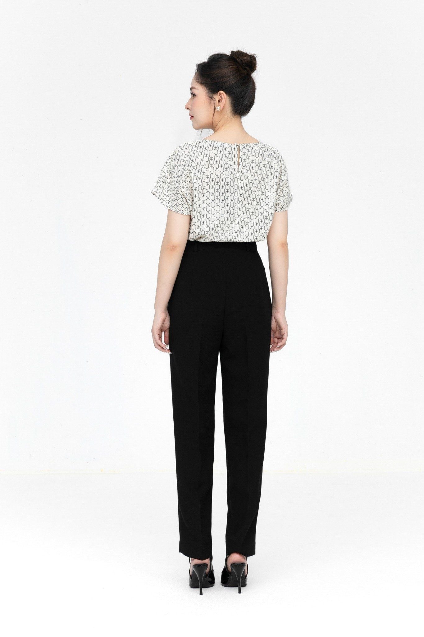 Kiểu dáng: áo sơ mi thiết kế phối chun eo, tone màu trắng phối họa tiết in