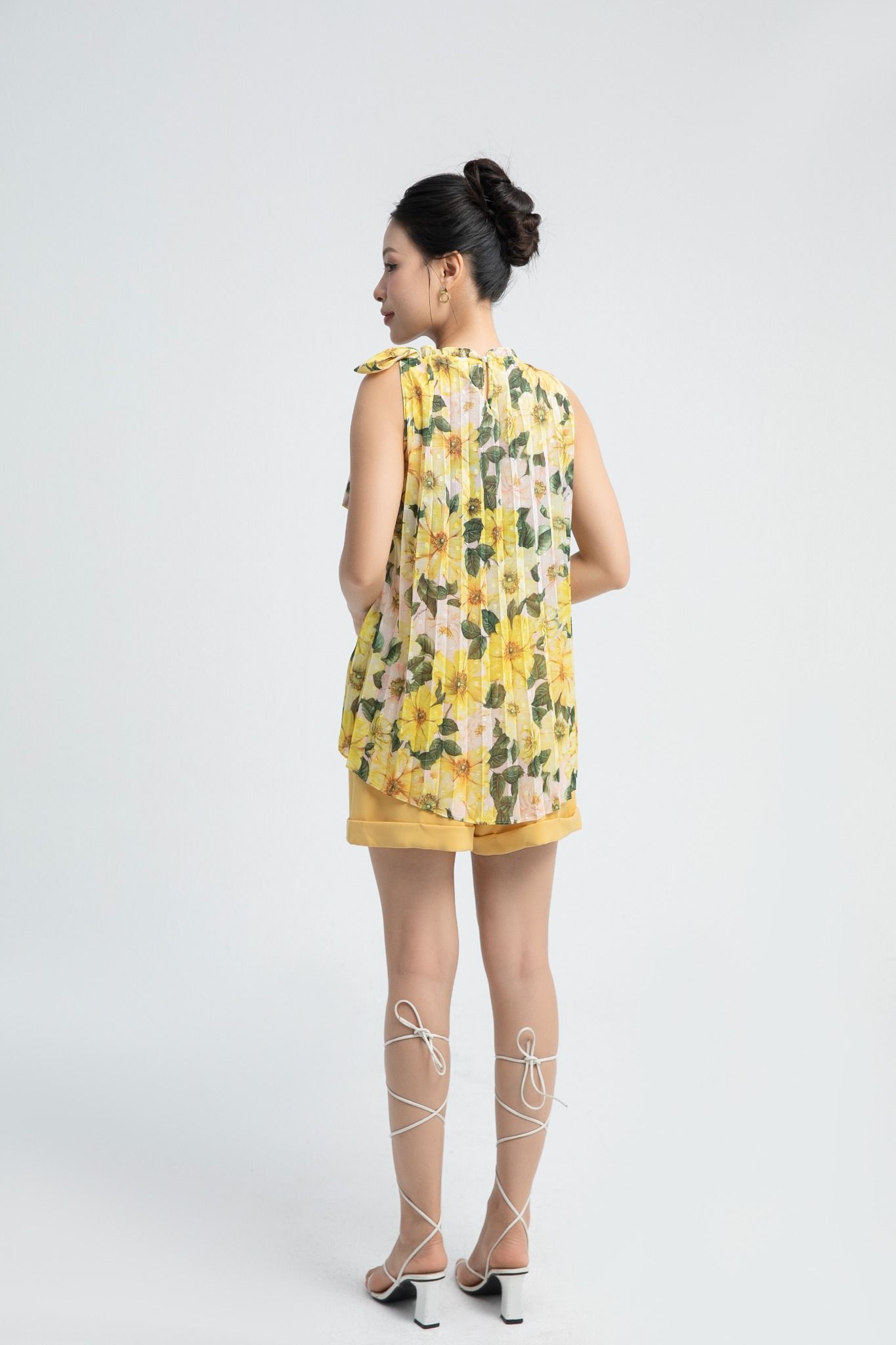 Kiểu dáng: áo thiết kế cổ yếm, kết hợp họa tiết hoa in