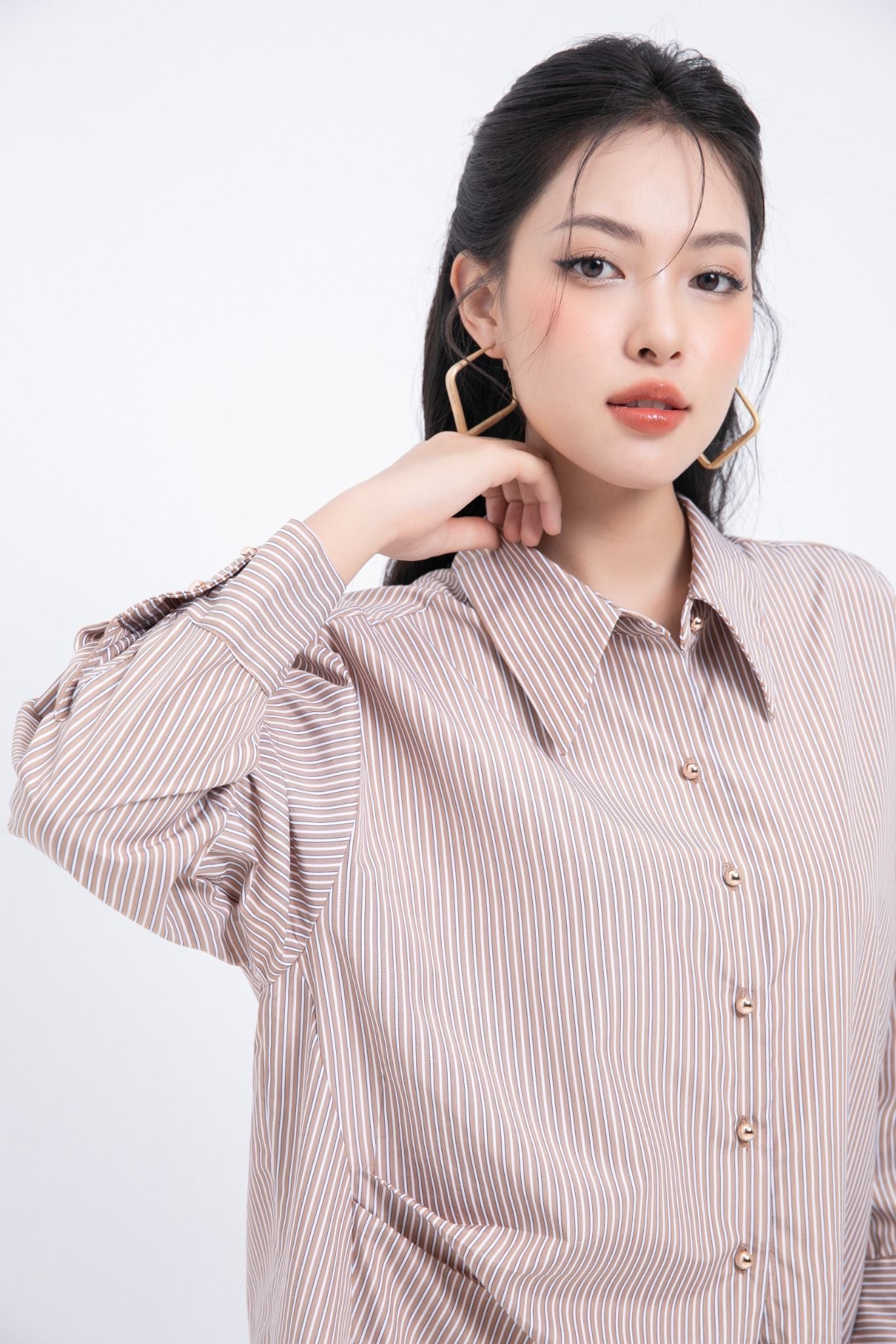 Kiểu dáng: áo sơ mi thiết kế dáng suông, cỏ bẻ, kết hợp họa tiết kẻ