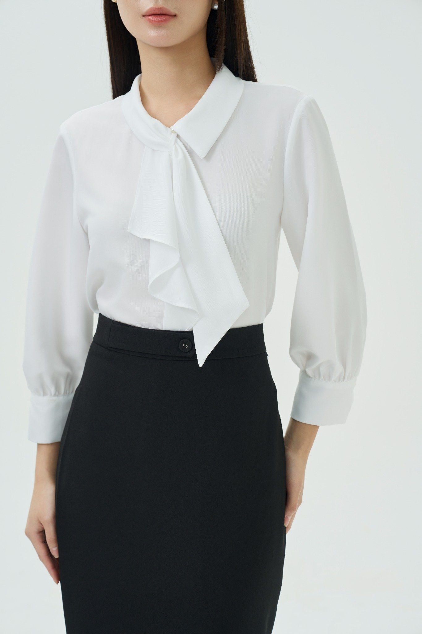 Kiểu dáng: áo thiết kế tay bồng, tone màu trắng trơn